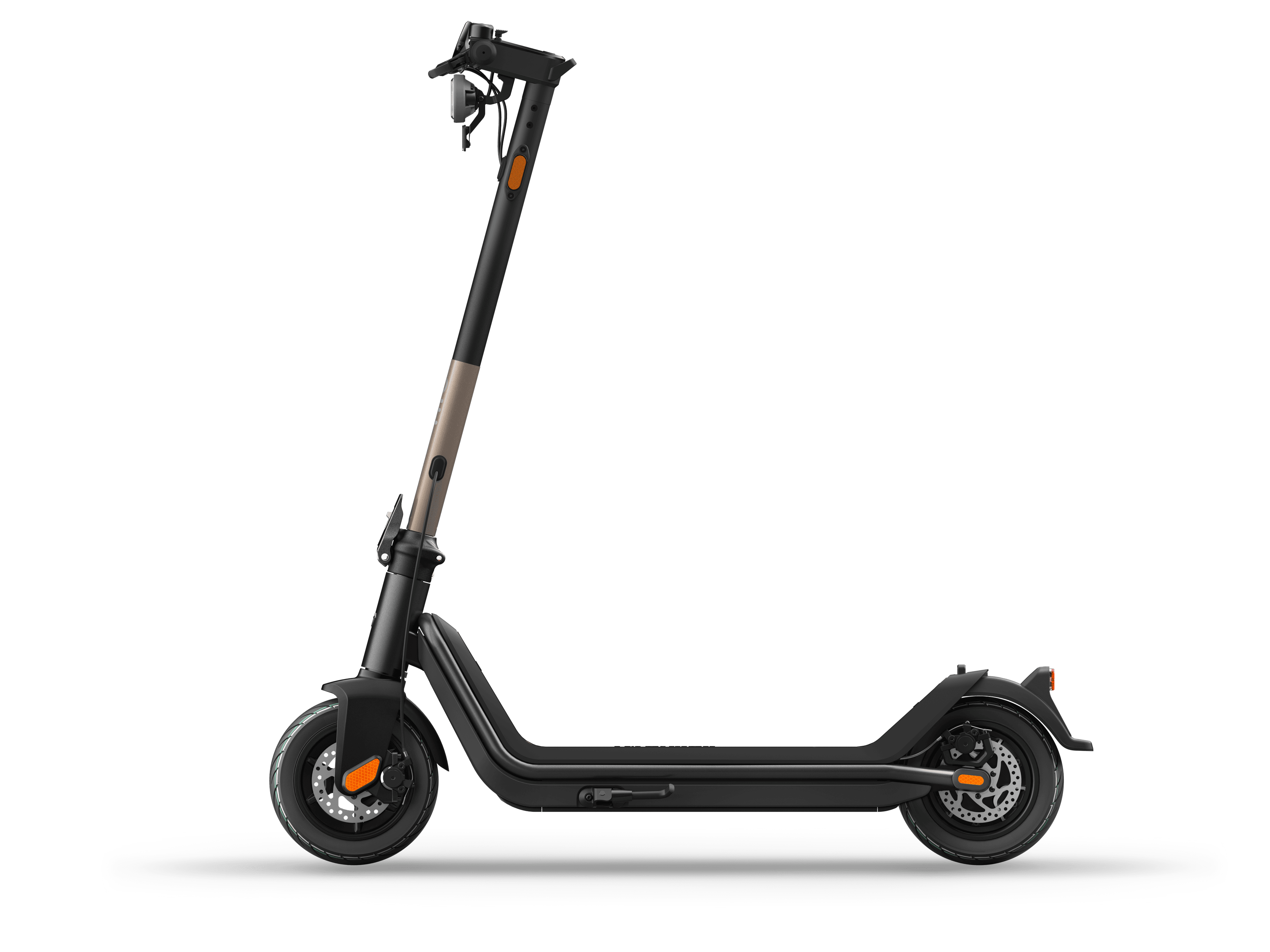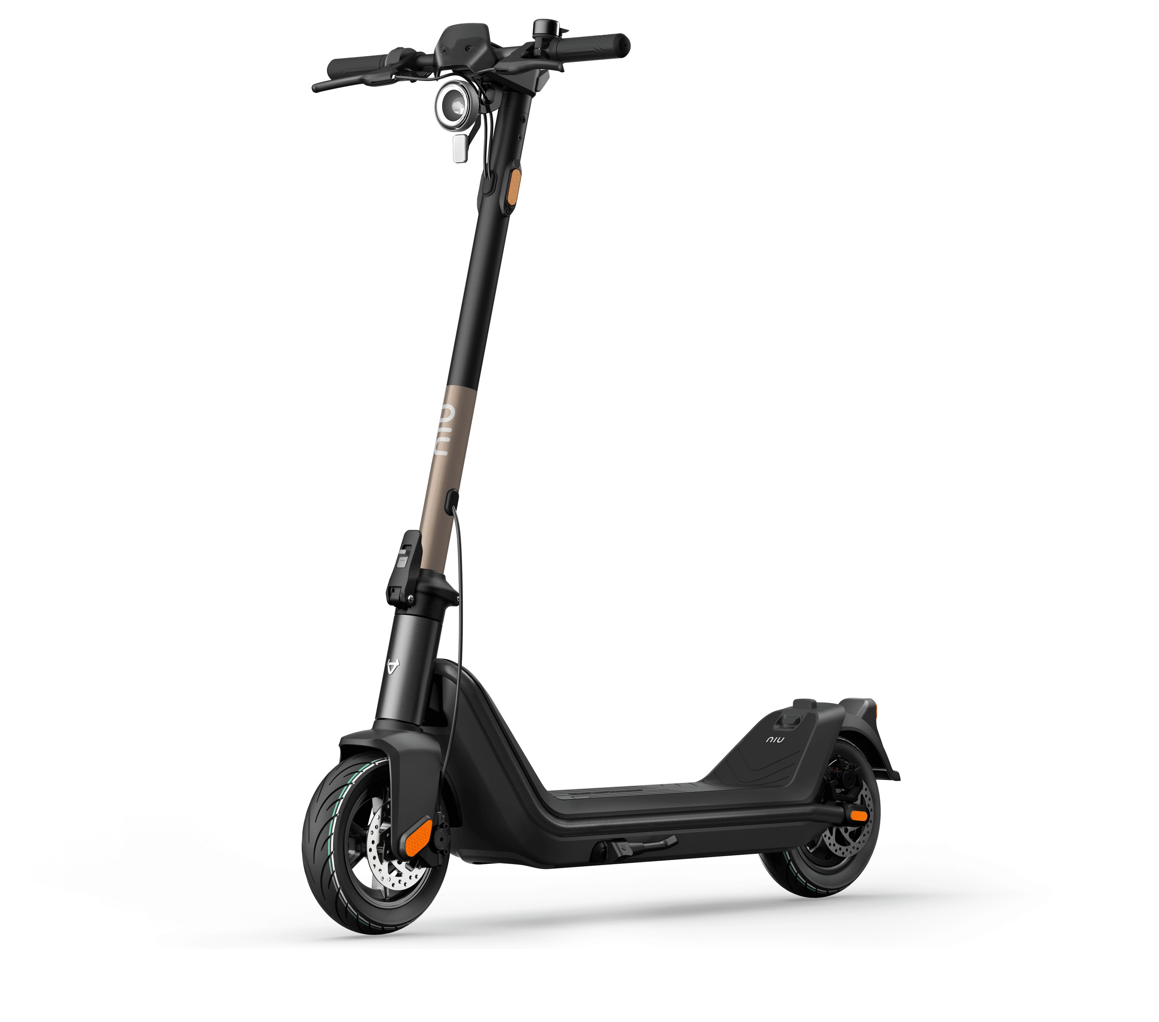Der KQi3 besteht aus Luftfahrtgrad-Aluminium, das hohe strukturelle Festigkeit und ultimatives Vertrauen für den Fahrer bietet. Die Doppel-Scheibenbremsen sorgen für starke Bremskraft sowohl bei trockenen als auch bei nassen Bedingungen. Darüber hinaus sorgt unser ikonisches Halo-Frontlicht und die integrierte Klingel dafür, dass du sowohl gesehen als auch gehört wirst.