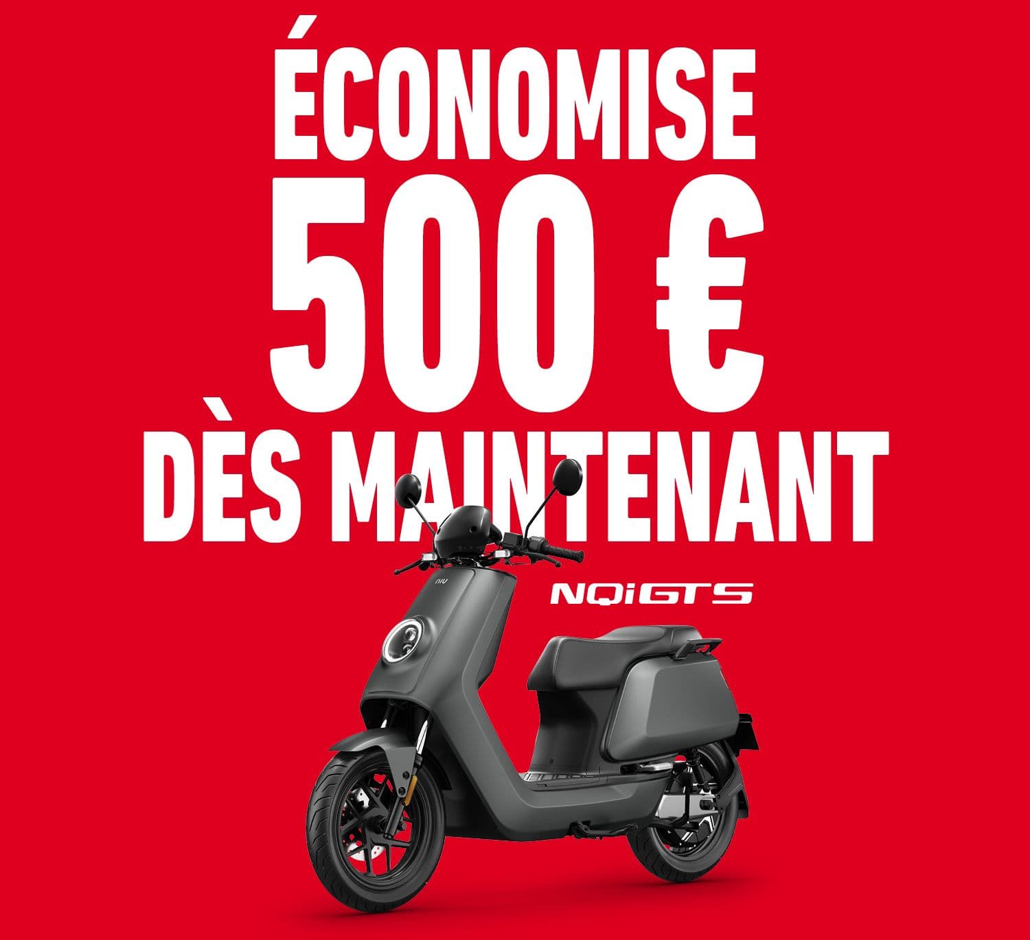 Opte pour le NQi GTS Standard Range en version 45 km/h ou 80 km/h et profite de la mobilité électrique intelligente à un prix spécial de 2 999 € (au lieu de 3 499 €).